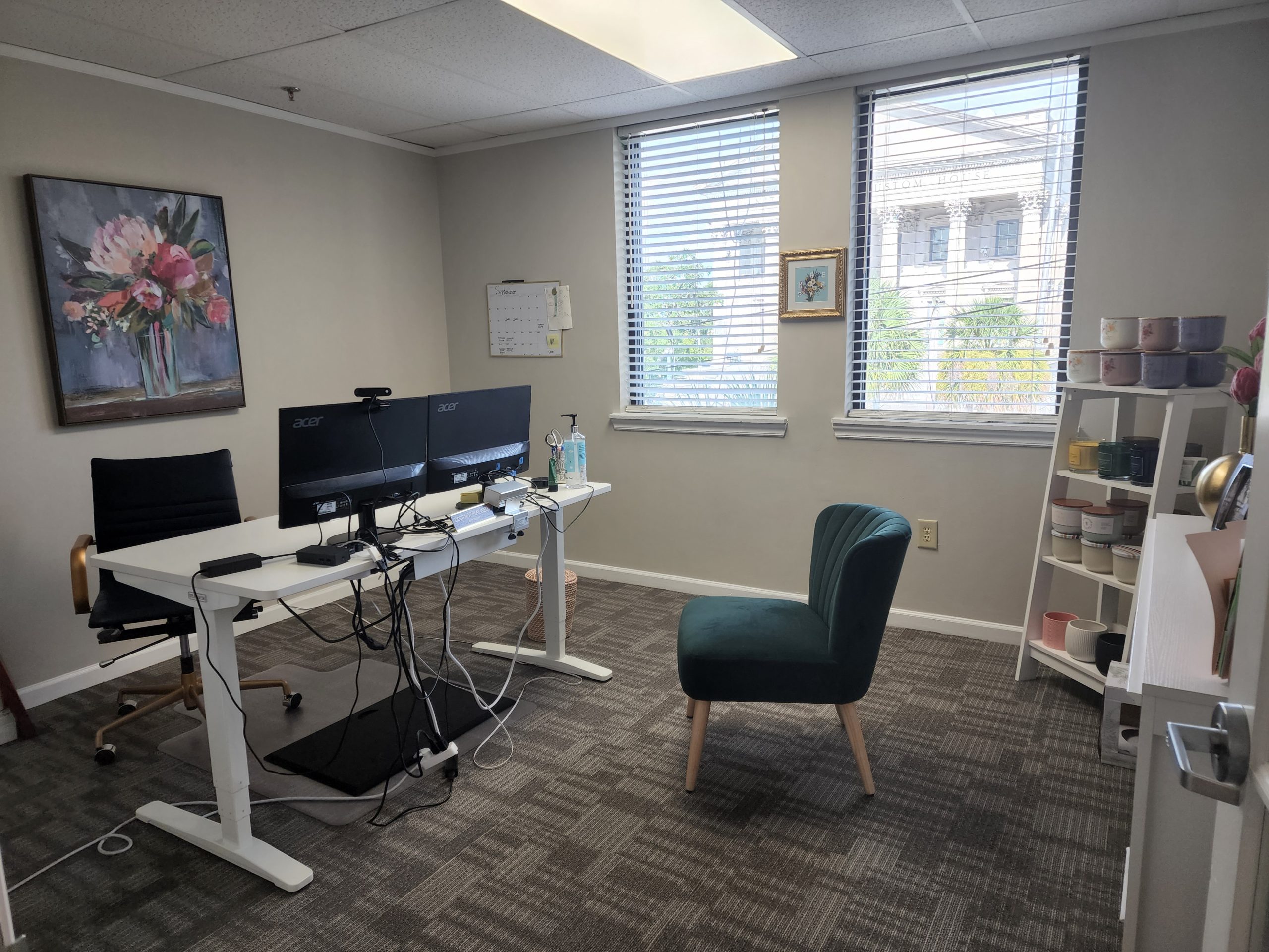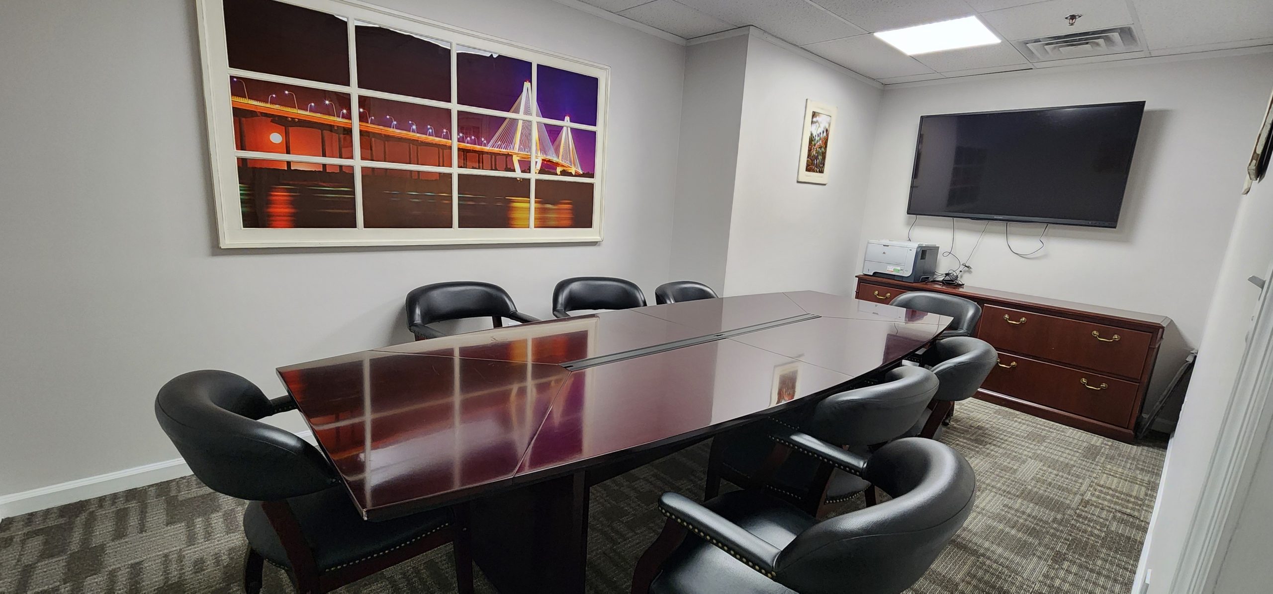 Corner office just off the elevator and easy for clients to locate. This suite features a reception/waiting area, 4 private offices and an open work area. Two of the private offices feature views over East Bay Street of the U.S. Custom House and Ravenel Bridge.