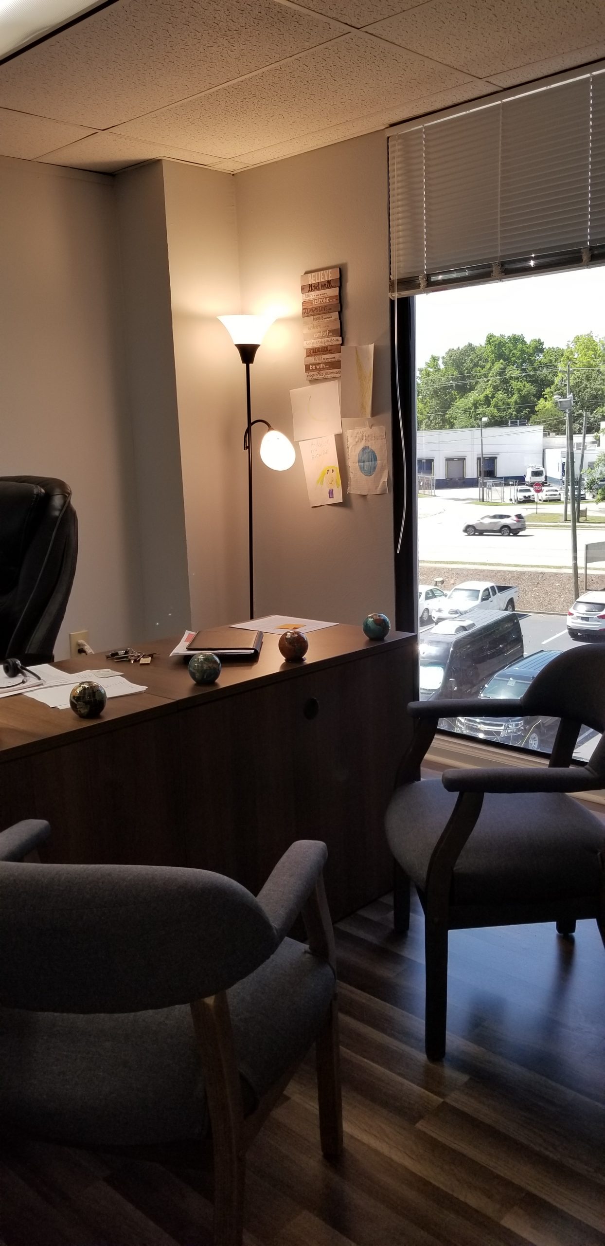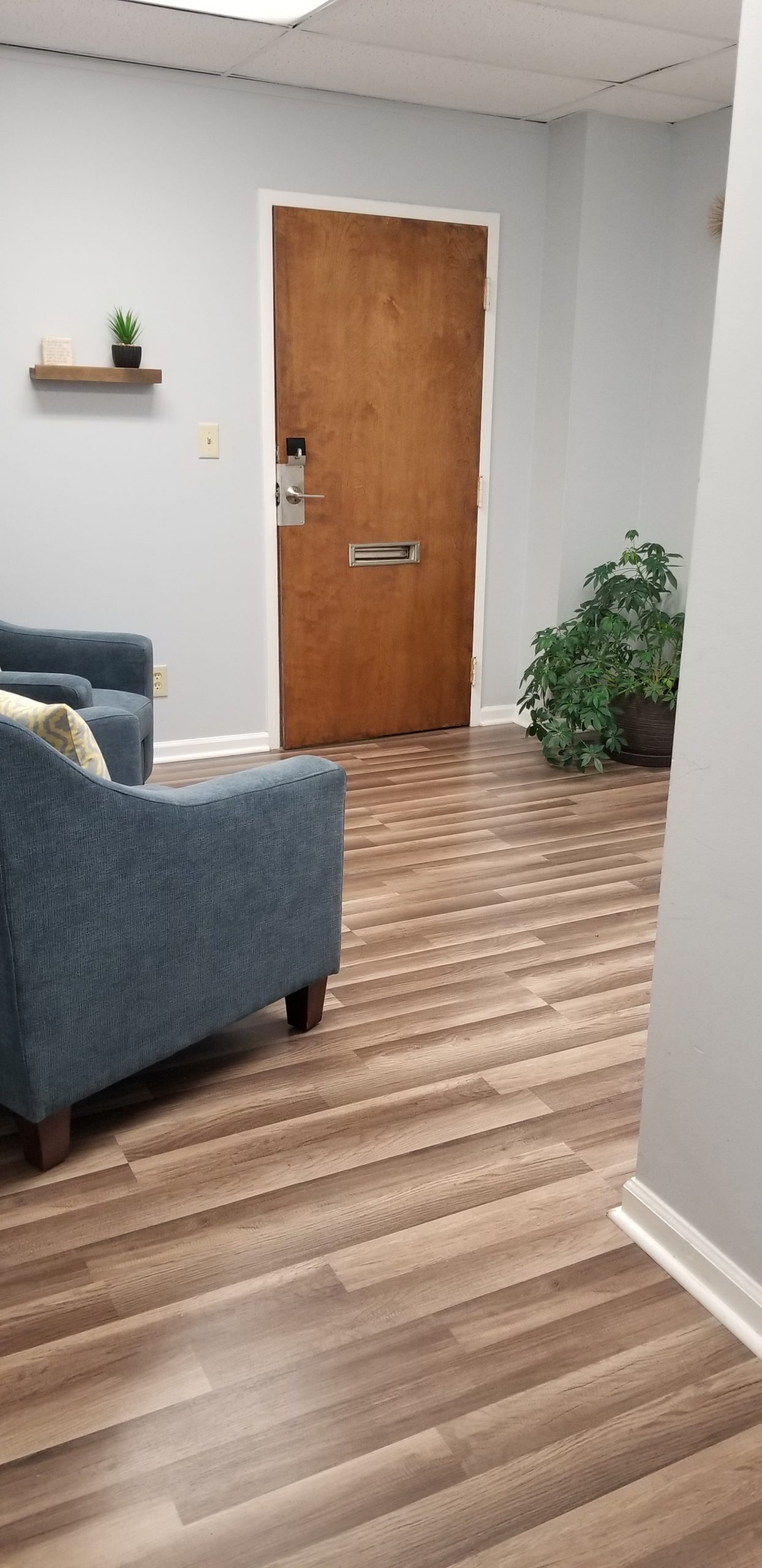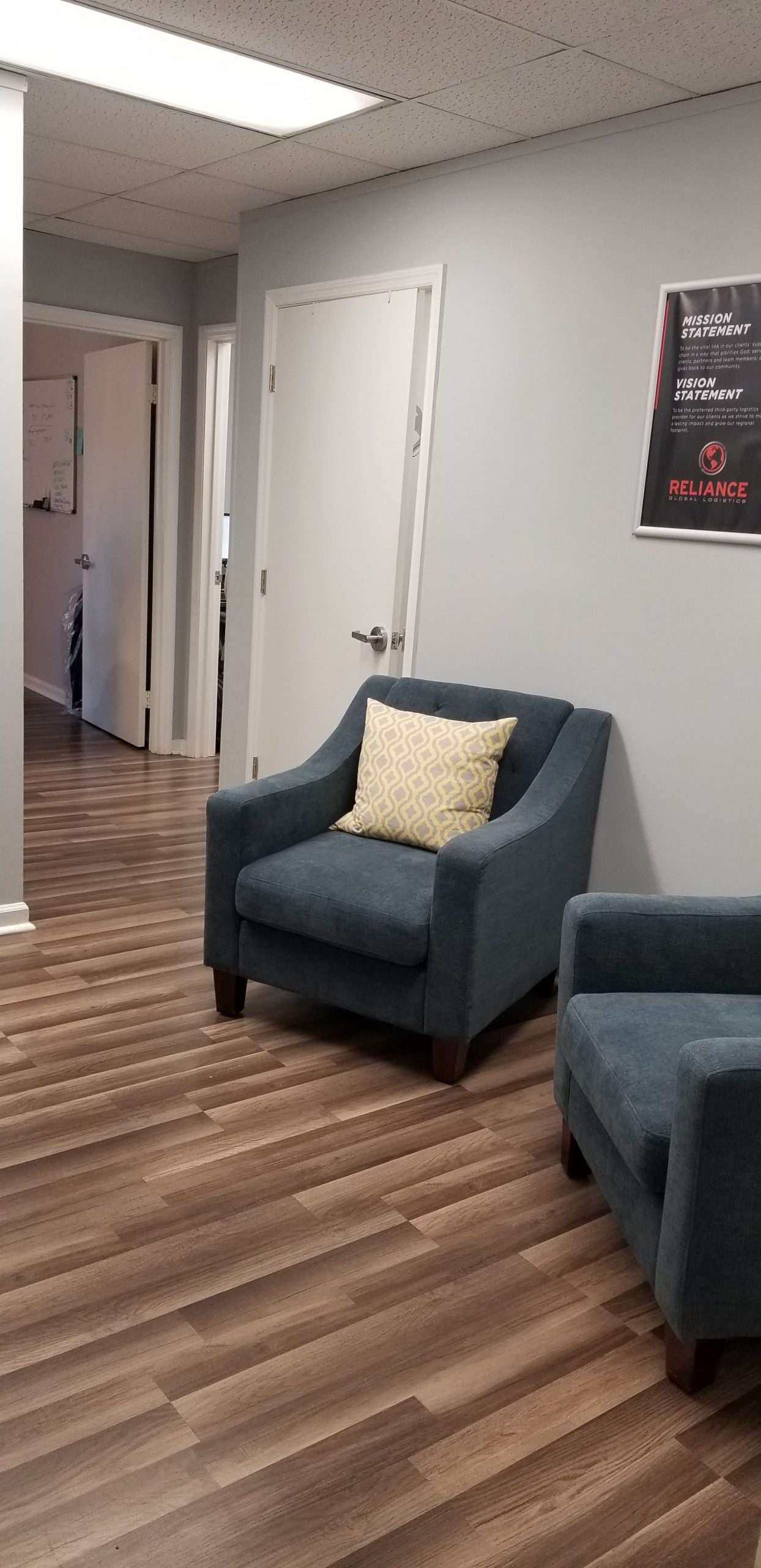 Corner office suite featuring a reception/waiting area, ample storage and two private offices.
